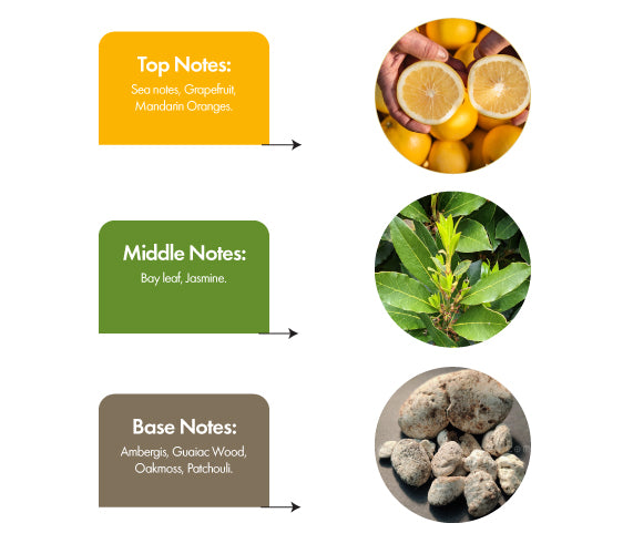 Notes: Top Notes: Marine Accord, Grapefruit, Mandarin Orange, Bay Leaf, Jasmine, Guaiac Wood, Oakmoss, Patchouli, Ambergris