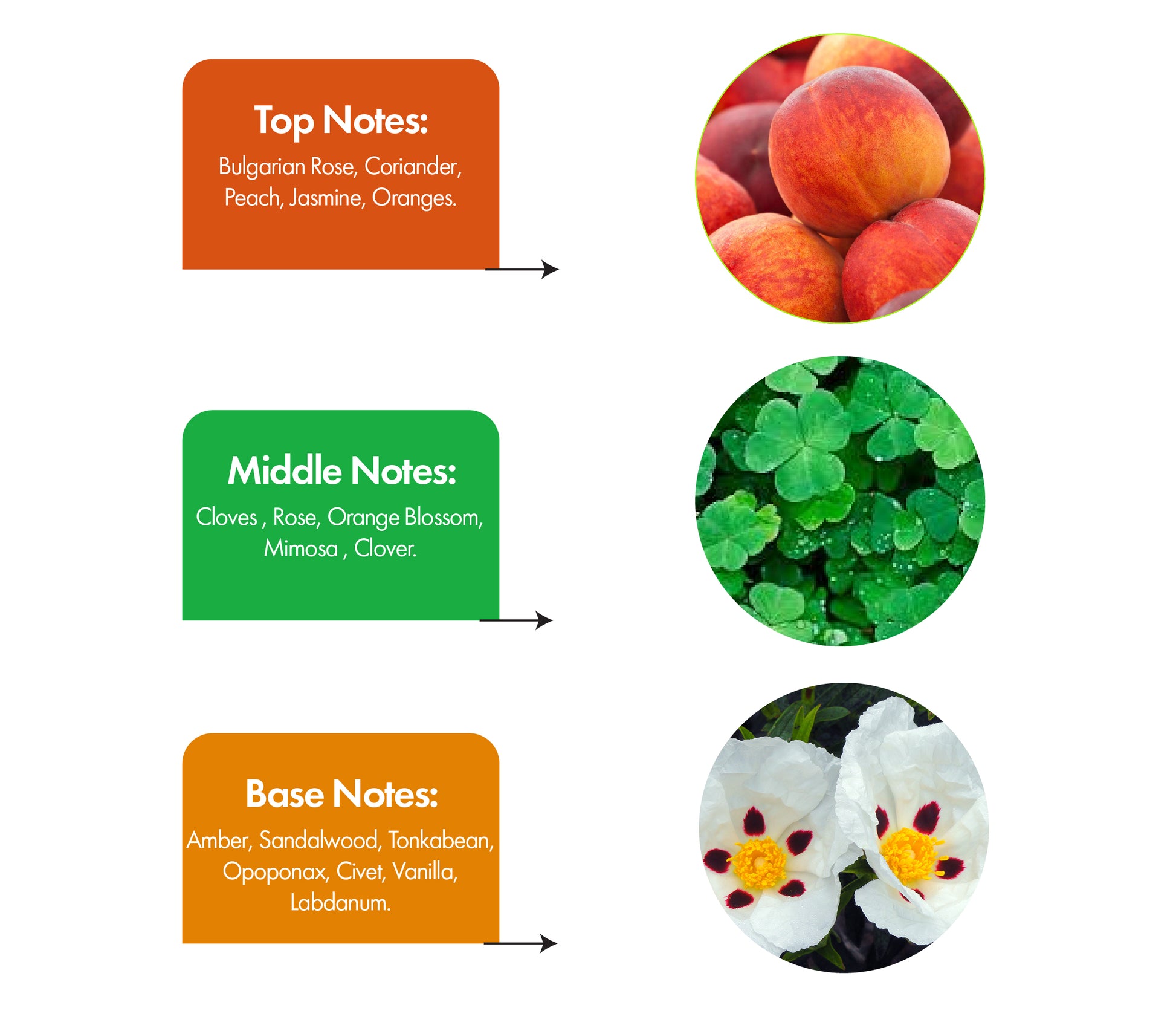 Fragrance Accords: Oriental, Warm Spicy, Citrus, Floral, Gourmand