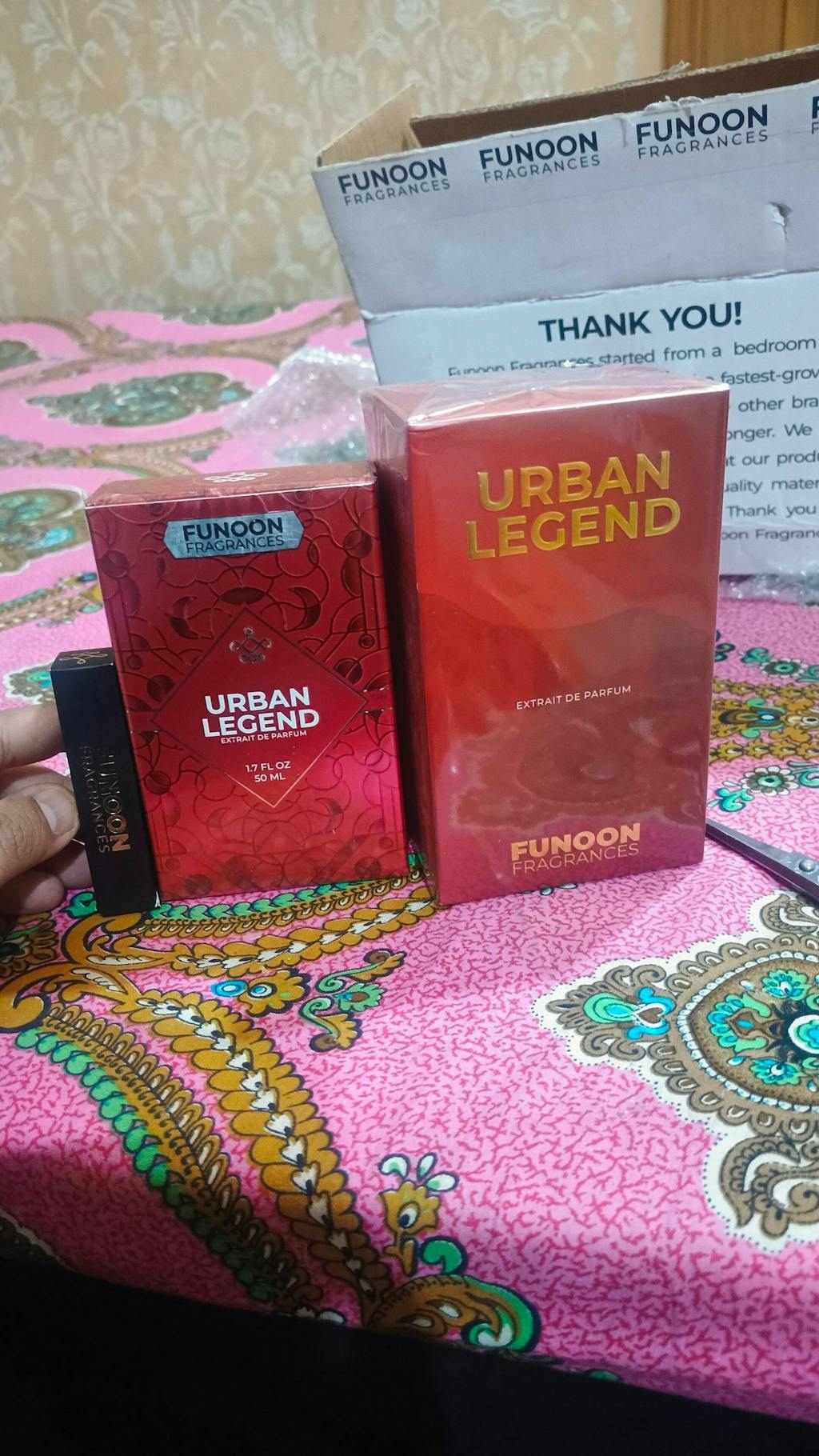 Delivery In time Funoon Fragrance are my favorite today I again Received my package 100 ml Funoon Arban legend and I sprayed and Fell Real like legend it's long lasting Amazing perfume that takes me to Heaven of Fragrance